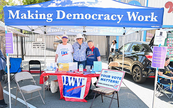 The stars of the day were: Ruby and Bob MacDonald for setting up and taking down the booth. For most engagement with the public: Hank Abrons, Adena Ishii, and Steve Blumenkrantz who twirled the ‘Your Vote Matters’ sign like a pro. Pam White for engaging with the public and connecting us with her Sorority in the booth next to us. They were very helpful.